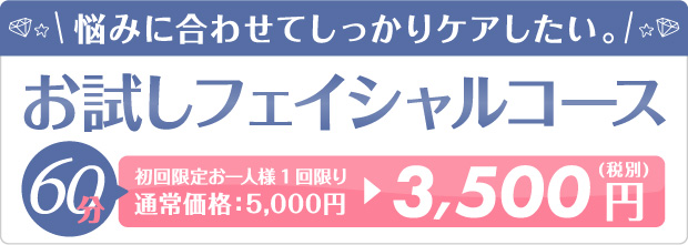 Natura(ナチュラ)のおためしフェイシャルは、肌状態に合わせたフェイシャルコースで悩みを一気に解決!!