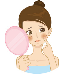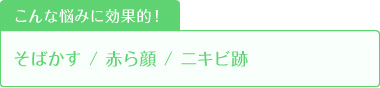 シミ・そばかすのほか、水分不足から起こるたるみ・小じわ、毛細血管が広がって見える赤ら顔、ニキビ跡、毛穴の開きなど、さまざまな肌トラブルに効果あり!!